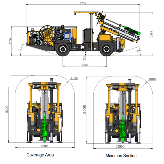 Опора буровой стрелы обеспечивает поворот на 360°, а в сочетании с поворотной стрелой и трансляционным направляющим рельсом позволяет выполнять 360-градусное бурение и параллельное бурение в пределах трех метров, удовлетворяя потребностям различных горных работ.